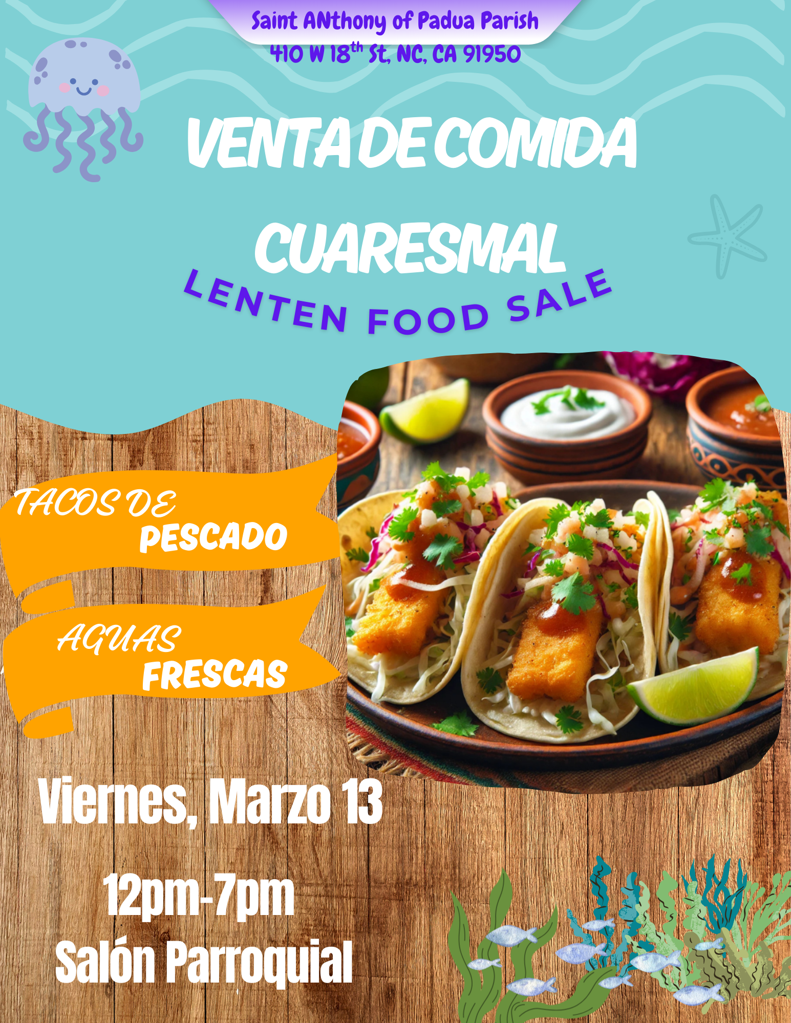 Venta de Comida/Food Sale + Add to Google Calendar + iCal / Outlook export 00 days 00 hours 00 minutes 00 seconds Date Mar 13 2026 Time 12:00 PM - 7:00 PM Location Saint Anthony of Padua National City 410 W 18th St, National City, CA 91950 Opening Hour 8-12pm - 2pm-5pm Website https://saintanthonyofpaduanc.org/ Phone (619) 707 9995 Share this event